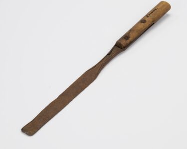 You are working at the machine that is making turves for factories. Your colleagues shovel the loose peat into the machine. It squeezes out the water and spits out a long ribbon of compressed peat. Your job is to cut it into separate lumps with your chopping knife (1). Further down the line, on the setting field, a colleague is turning over the planks of drying peat (2). Mixing the peat with water into a ‘mortar’ for turves for domestic use could also be done by machine. The rest of the production process remains manual work.