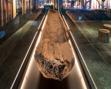 Finding a suitable tree to make a canoe must have been quite a job. There are plenty of trees, you would think, but you need to find the perfect tree: straight as an arrow, with only a few branches, and thick and sturdy enough to carry a person. Then the hard work begins: with axes made of flint and antler bone the tree must be cut down and then hauled out of the forest to the waterfront. There, the bark is removed after which the chopping can begin – hours and hours of chopping, until the tree is hollowed out sufficiently.