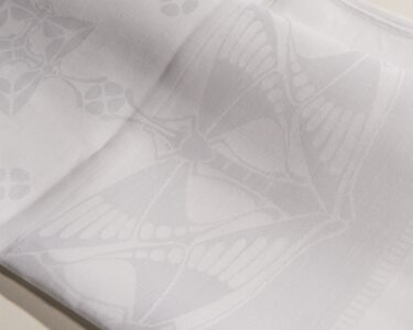 Rond 1903 komt Chris Lebeau in contact met de linnenfabrikant E.J.F. van Dissel & Zonen. Het bedrijft geeft die pas afgestudeerde kunstenaar de opdracht tafellinnen te ontwerpen. Een geweldige kans voor Lebeau om mooie voorwerpen te ontwerpen voor mensen met iets lagere inkomens. Lebeau gebruikt in zijn ontwerpen eenvoudig vormen. En symmetrie: de ene helft is het spiegelbeeld van de andere helft. Zie je hoe de losse vlinders samenkomen tot een ritmisch patroon? Wát een vondst van de perfectionist Lebeau.