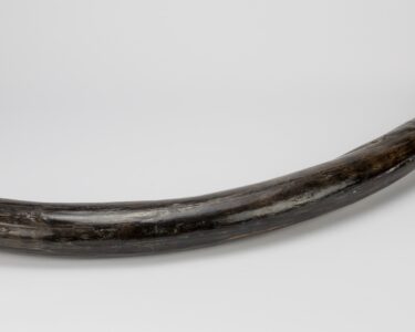 Hier, op de plek waar jij nu staat, was 50.000 jaar geleden een grote, glooiende grasvlakte. De mammoet was de heerser van deze uitgestrekte steppe. Deze kolossale dieren konden wel drie meter hoog worden. Met hun enorme slagtanden (1) woelden ze de dorre grond om, op zoek naar eten. Hun dieet bestond uit grassen, die ze vermaalden met hun grote kiezen (2).