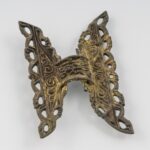 Voor je hangt een replica van een ‘fibula’. Een fibula is een mantelspeld. De echte is gebruikt door de prinses van Zweeloo. Deze replica mag je aanraken. Het is een rijkelijk versierde speld. Je kunt alle details goed voelen! De fibula is gemaakt van brons en heeft de vorm van een vlinder. De speld is zo’n 11 centimeter hoog en 7 centimeter breed. De lange, omhoogstaande vleugels van de vlinder zijn versierd met krullen. De kleine gaatjes in de randen van beide vleugels zijn opzettelijk gemaakt toen deze speld werd gegoten.
