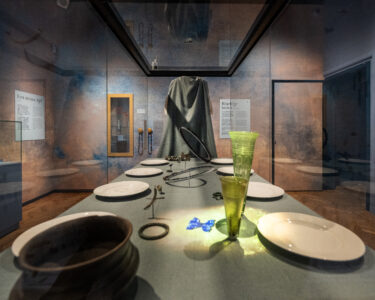 De vergulde mantelspeld in de vitrine is bij Zweeloo in een graf gevonden samen met allerlei andere sieraden, zilveren toiletspullen en resten van aardewerken potten. Uit de spullen blijkt dat de vrouw in het graf belangrijk moet zijn geweest. Daarom kreeg ze de naam Prinses van Zweeloo.